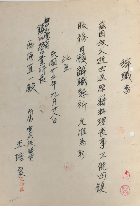 王培良辞职信