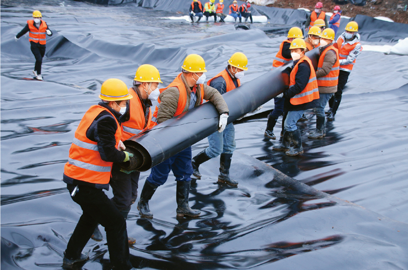 火神山雷神山医院建设过程中,4万名建设者们舍小家顾大家、舍小我取大义,千里“逆行”而来,倾力抢建、无私奉献,用团结奋战筑牢项目建设的钢铁长城,生动诠释了同舟共济、众志成城的精神伟力。图为2020年1月26日,中建集团火神山医院建设者正在齐心协力铺设HDPE防渗膜,确保雨污水零渗漏、零扩散。