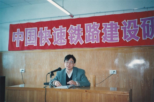 上世纪九十年代,王玉泽在铁四院作中国高速铁路建设研究成果报告。