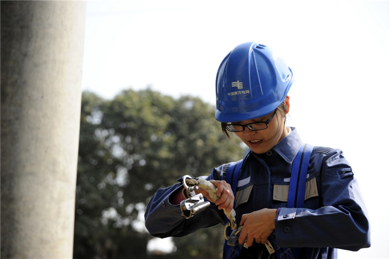 在远郊所上班,下班后没有那么多娱乐活动,特别是镇上不赶集的时候,也是很冷清的。想着给自己找点事儿做的钟卢就琢磨着要考一个登高证,一下班了就让所里的师傅们教怎么爬杆。遇上不赶集营业厅没人的日子,钟卢也跟着师傅们去巡线,她说,这样在业扩报装画图的时候就能对生产的GIS系统更加熟悉和了解。