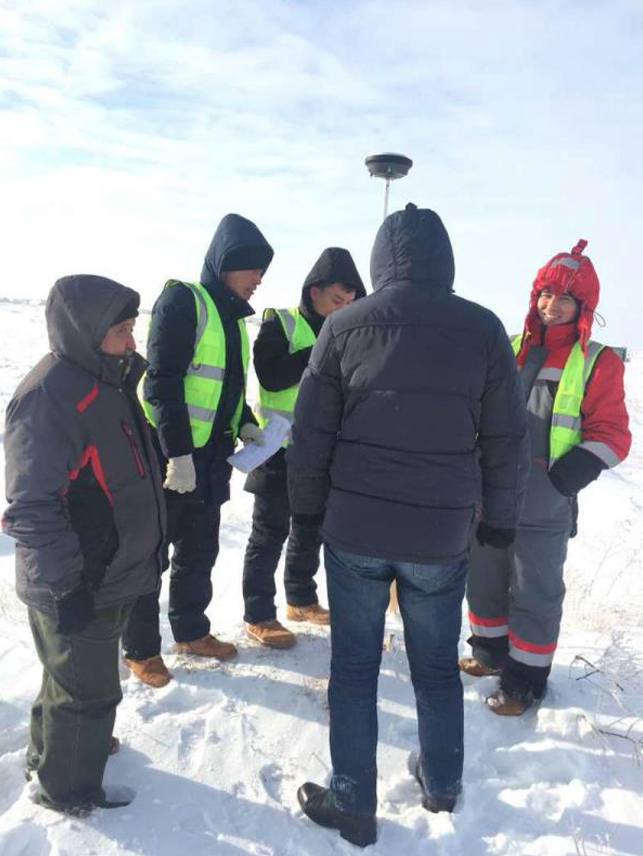 在阿斯塔纳市最寒冷的季节,暴雪连连,前往施工现场的路面积雪常常会达到半米深,风雪再强劲终敌不过新兴建设者的顽强意志。他们一步一个脚印,坚韧的足迹深深地印在阿斯塔纳市的雪地上。极端天气给施工带来了很多阻碍,有时为了检查两个桩号间的施工质量,现场的施工人员往往要在雪地里步行很久才能从一个桩号到达下一个桩号。