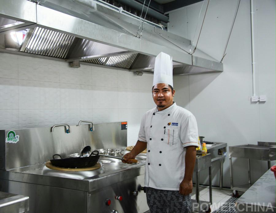 炎炎烈日在巴林上空肆虐,虽未进入夏天,但日渐攀升的温度也渐渐变得让人难以忍受。在中国电建巴林阿杜二期项目上,项目部全体员工经过半个月的忙碌,项目部职工餐厅终于建设完毕。此刻,餐厅的后厨操作间,一件件崭新的厨具也静静地安放在对应的位置。视线一转,我们看到了今天故事的主角,朴实憨厚的面庞以及略微臃肿的身材让他后勤工作人员中并不是很显眼。此刻他正在端着水盆,拿着抹布,目光盯着操作台,聚精会神地擦拭着操作台的每一个角落,那全神贯注的神情就像在进行一场战役,白色的大褂已渐渐被汗水浸湿,紧紧地与后背贴在一起,额头上细密的汗珠沿着鬓角向下滴落。终于,擦完了一切,也顾不得擦拭脸上的汗水,只见他缓缓直起上身,熟练地打开开关,送气、打火、加风......整套动作行云流水,一气呵成,看得人眼花缭乱。灶台上缓缓升腾起跃动的火焰,浅红色火光映着他脸上的汗珠,略带疲惫的脸庞终于舒展开来。