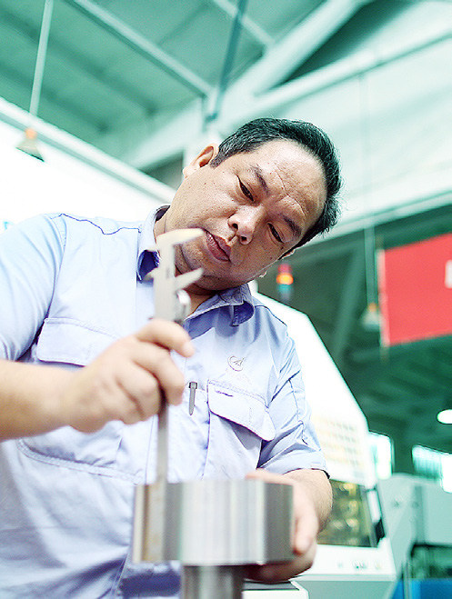 1992年进入洪都公司钳焊液压附件厂工作的马跃辉原本是一名退伍军人,在零件加工方面没有任何基础。跟师傅学了半年车床工作后,由于当时外协任务量大,他就被安排到铣工的岗位上。