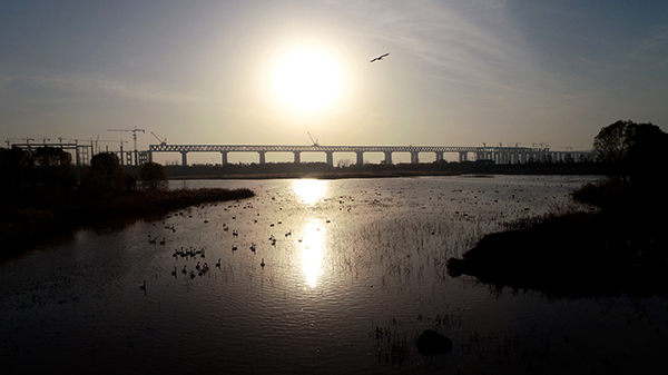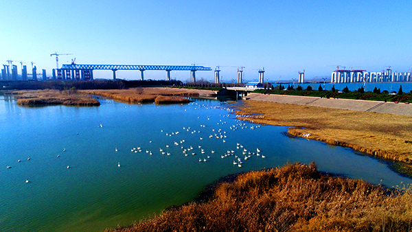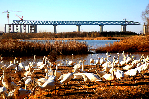 据当地鸟类管理部门统计,大桥建设4年间,来附近栖息越冬的天鹅数量不减反增,这是对项目部呵护天鹅生存环境的最好回报。