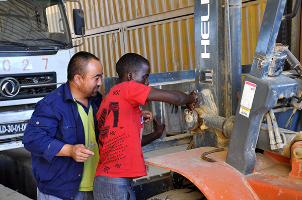 刚开始接触机械修理工作,加之语言不通,二人感到非常吃力。或许得益于非洲人民擅长“涂鸦”的天赋,他们简单数笔就能将所要表达的汽车部件形象的画出来,再通过丰富的肢体语言进行生动诠释,使学习的过程不仅充满了乐趣,而且很快克服了语言不通这一障碍。
