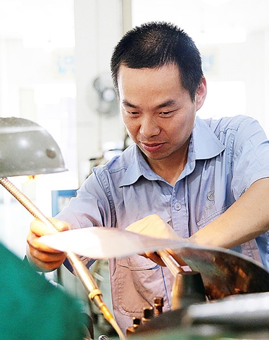 王树臣是熊文凯带的第一个徒弟,他跟熊师傅学习的时候,正逢生产线上人员需求短缺。那一年熊文凯年仅24岁,入职也只有5个年头,年龄相当的师徒俩更多时候是以平等的方式交流学习。这种新型的授徒模式让王树臣学得开心、悟得透彻、进步飞快。“别看我师傅个头小,可浓缩的都是精华。”熊文凯精湛的技艺、敬业的品质,一直让王树臣感佩不已。如今,王树臣早已是武汉市“青年岗位能手”,公司“十佳青年”,由于技能过硬,被抽调到新的生产线。