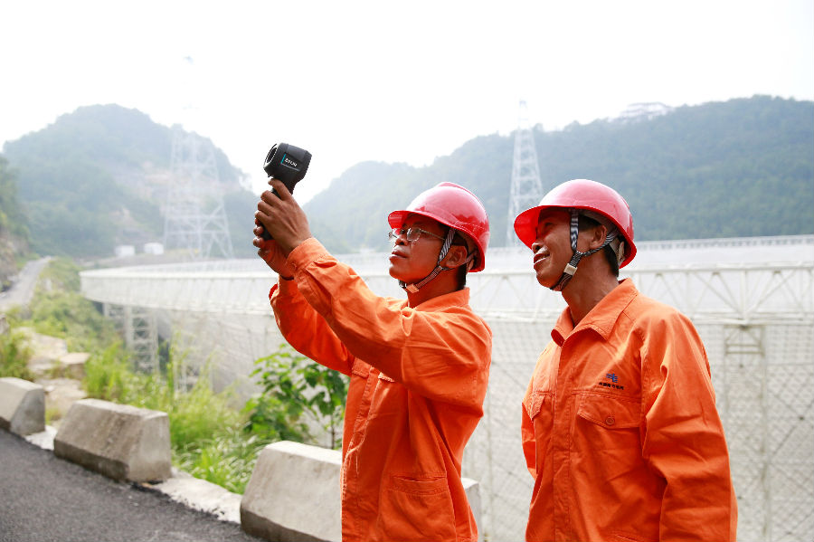 2019年是“天眼”由试运行转入正式运行的关键一年,为了配合“天眼”的技术评审工作,“天眼供电服务队”运用超声波检测仪、紫外线探测仪、热成像仪、局部放电测试仪、无人机等电网高科技设备,对3681台设备进行特巡特维,确保“天眼”通过国家验收的电力需求和相关保障工作。