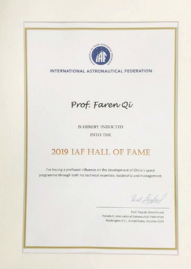 近日,在2019年国际宇航大会(IAC)上,中国航天科技集团有限公司五院戚发轫院士荣获了本年度国际宇航联合会(IAF)“名人堂”( Hall of Fame)奖项,该奖项旨在表彰对推动空间科学技术有杰出贡献的科学家。