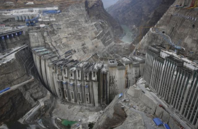 近日拍摄的白鹤滩水电站大坝全景。杜健伟 摄