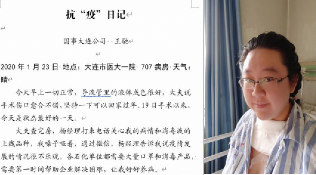 “从来没有感觉武汉的疫情离我如此之近,我虽然做不了什么大事,但已经牵头负责日化用品框架协议两年多了,有一些经验,虽然说话费劲,但还可以微信联络,多一个人尽一份力总是好的。”这是她在自己的术后抗“疫”日记中提到的。