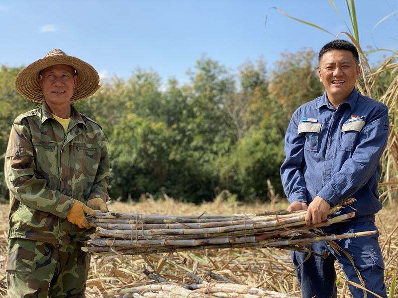 2020年1月10日,刘志鹏帮助村民收割甘蔗。林丹丹 摄