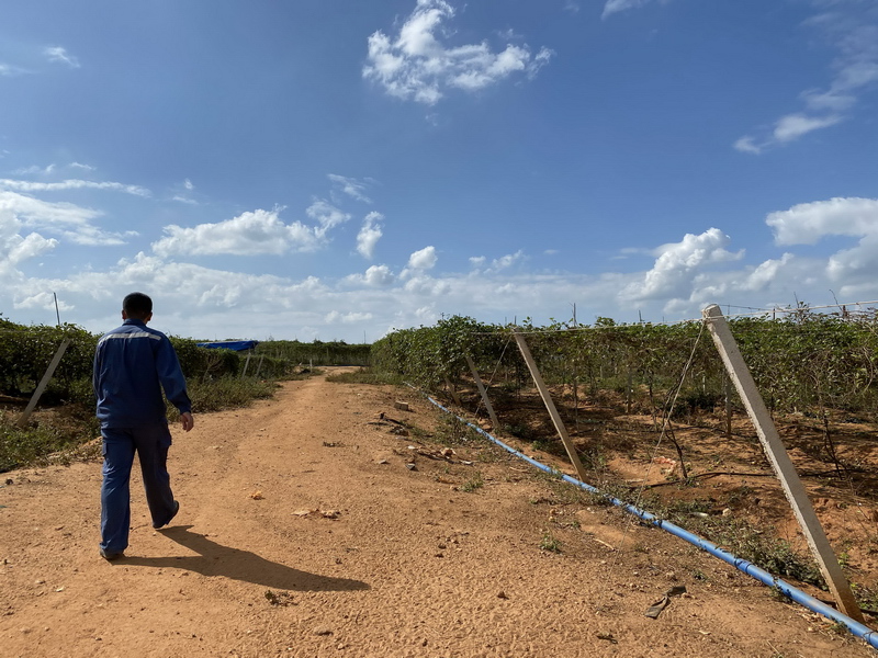 2020年1月10日,刘志鹏到百香果园里了解百香果种植情况。林丹丹 摄