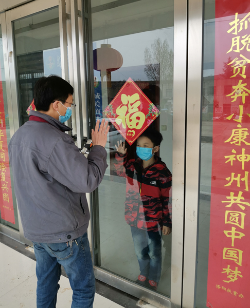 王建栋带着院党委的殷切期望,拉着满满一车由院出资购买的疫情防控慰问品再次踏上了“回家”之路。因为得知汝阳县全县禁行,他便提前联系了乡镇包村干部和村支书到高速路口来接。但是来接的两位老大哥却带来了让他失望的消息:“经向镇疫情防控指挥部请示,由于涧西区是洛阳市新冠肺炎确诊病例最多的区域,不能到村,由我们两位代表村里对你进行劝返。”王建栋“厚着脸皮”笑着说:“怎么了,我都来了,再回去这么远,你们也忍心啊?再说,完不成院党委交给的任务,我绝不回去!”