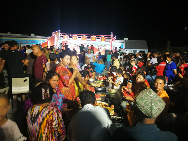 2019年7月26日,惠民夜市开业当天。王磊代表驻村队在“百姓大舞台上”致开业辞。突然,一位维吾尔族大妈拿了一束花送给他。她激动地说“华电工作队用了两年时间为我们村民做了很多实事好事,我们的村庄美了、亮了,我们的收入也高了,我们的生活越来越好了,我们确实感受到了党和国家带给我们的温暖,我们真心诚意的感谢华电工作队。”