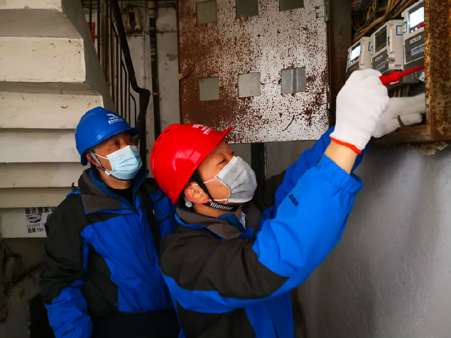 在该小区疾控工作人员安排下,申友强和李明虎做好防护,到达隔离小区单元楼内查找故障。经了解判断,故障原因是用户家门口的开关老化导致停电,属于用户自行维护范围,但师徒俩二话没说,从工具包里拿出开关麻利地更换起来,几分钟就恢复了用电。