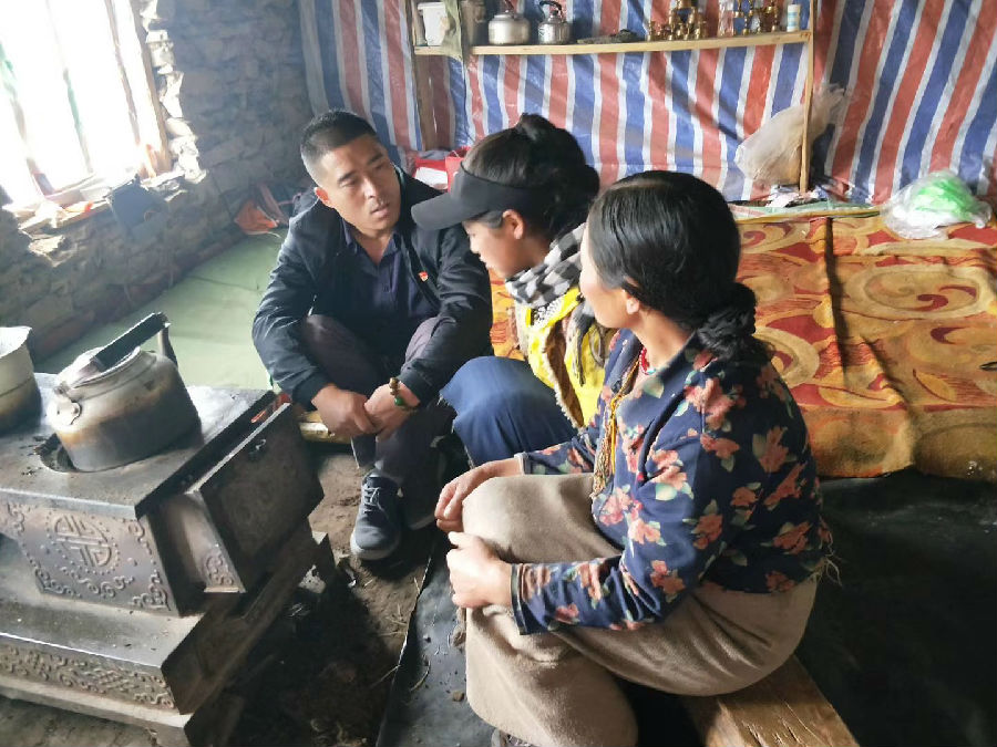 心系村民,把脱贫重任时刻扛在自己肩上,崔同响在扶贫一线没有休息日,义无反顾的奉献出全部心血,不知疲倦的对本村贫困户进行走访慰问。通过入户调研了解到贫困户的家庭情况、收入来源、致贫原因和脱贫意向及生活现状等具体情况:通过走村入户了解到,泽旺卓玛下肢瘫痪多年,因语言不通、交通不便等原因一直未办理残疾证,导致无法享受相应的补贴。在本次走访中,崔同响经过多番努力,最终顺利办理残疾证,为泽旺卓玛争取到应有的补贴,实实在在地为老百姓办了实事,增加了收入。