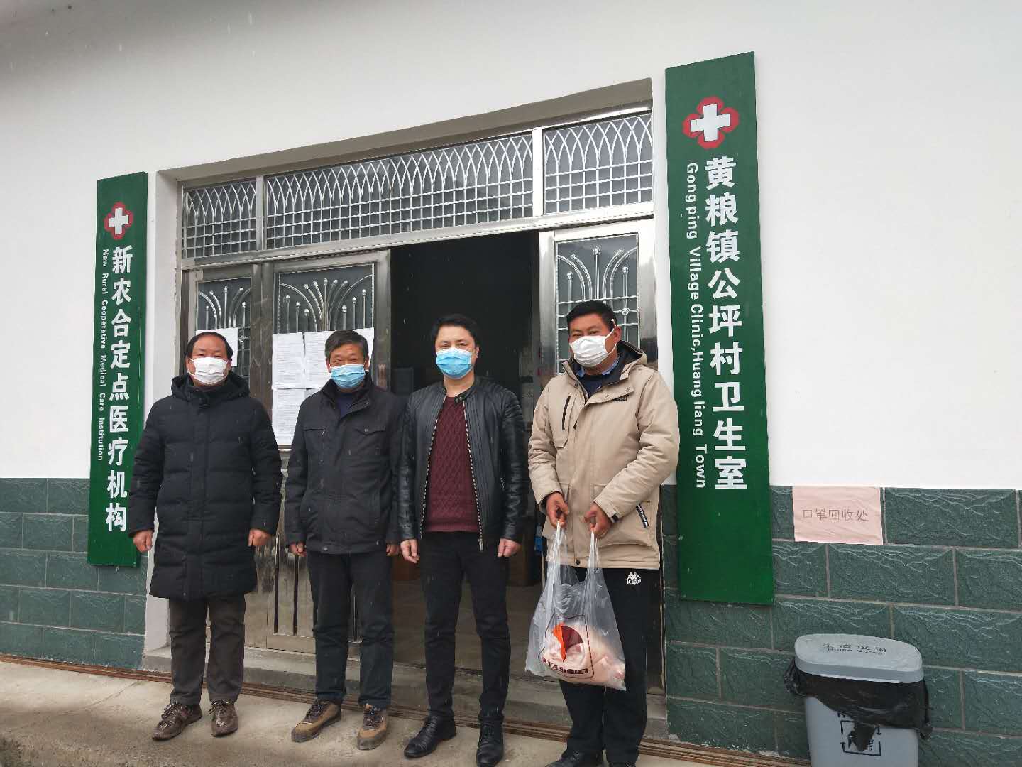 彭应珍(左一)给一线送防疫和慰问物资