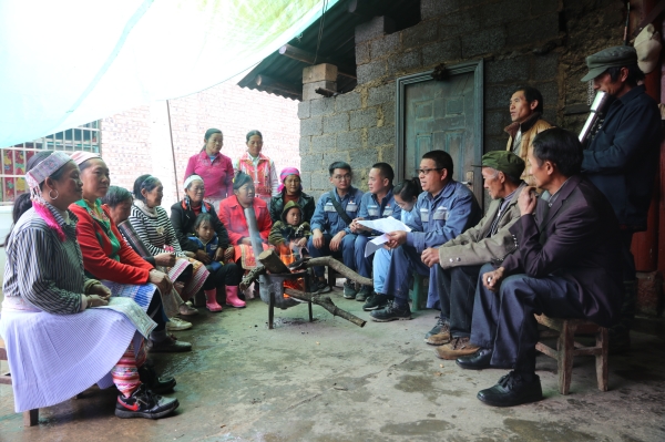 在村民王树闵家,孟崇礼向苗族群众宣传如何防止食用野生菌中毒。(廖洁 摄)