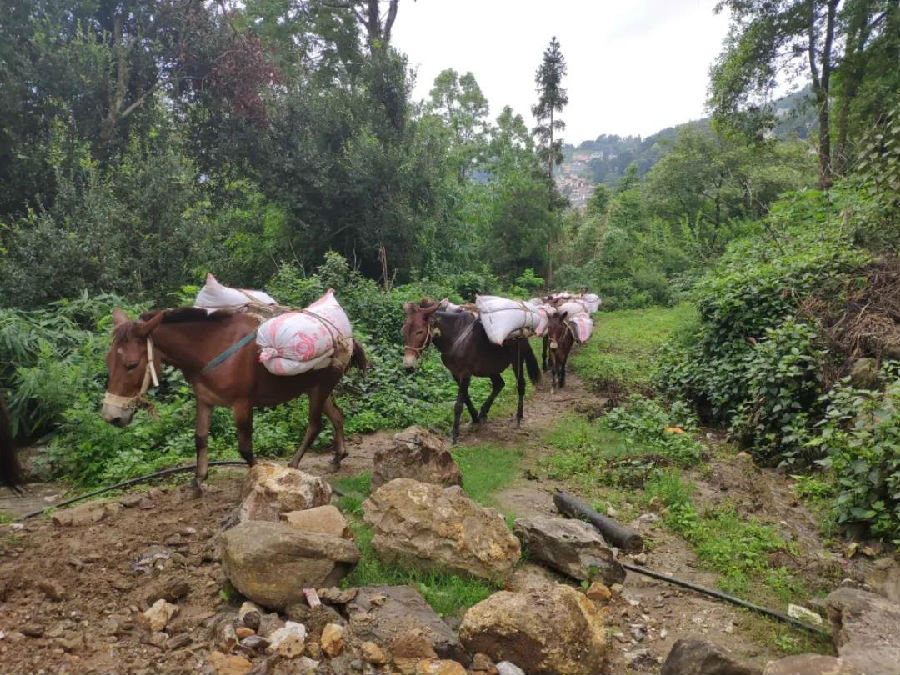 扶贫最重要的是引领贫困群众走上致富的道路,把摆脱贫困的“金钥匙”交到群众手上。李富培通过走访调研发现,制约朝阳村委会产业发展的一个主要因素是路。朝阳村委会依山而建,从村民家中到田间地头大部分是石子路、土路,几百年来耕种靠的是人背马驮,生产效率低下,群众劳作艰辛。为此,他起草了朝阳村委会“小落孔村入村道路及撒玛坝梯田南端生产道路硬化”项目建议书,通过各种渠道向上级反映情况。一时间从村委会到乡政府、各级部门和县政府都能看到他忙碌奔波的背影。红河县的高温,让他的衣服被汗水浸透,崎岖的山路,让他每天都要花费大量的时间往返于各地,但他没有一句抱怨,用他的话说:“只要能解决路的问题,就算跑断腿也值得。”兵器工业集团“哈尼梯田全球重要农业文化遗产保护传承学校”援建项目的落地为道路修建工作带来了转机,在他的建议下,驻地党委政府通过了道路修建计划。至此,“朝阳至小落孔村”、“龙施至小落孔村”、“龙玛至小落孔村”、“小落孔村至戈午水沟”产业道路立项,并于2019年竣工验收,结束了村民人背马驮的生产方式。