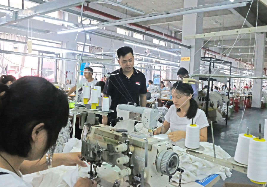 今年4月,王南积极利用自己的人脉关系,为厂里找来了每月20万件的订单,使该厂80%以上工人每月都能领到3000多元的工资。“熟练工一个月能领到5000多元,厂里已经与广州童装品牌建立长期合作关系,现在厂里产能不足,我们还需要大量招工。”杨志镇说。