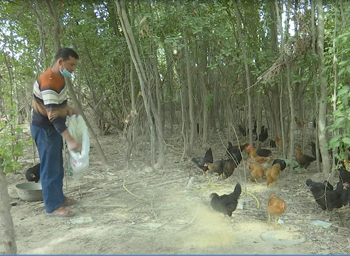 村民艾克拜尔·艾海提在养鸡场