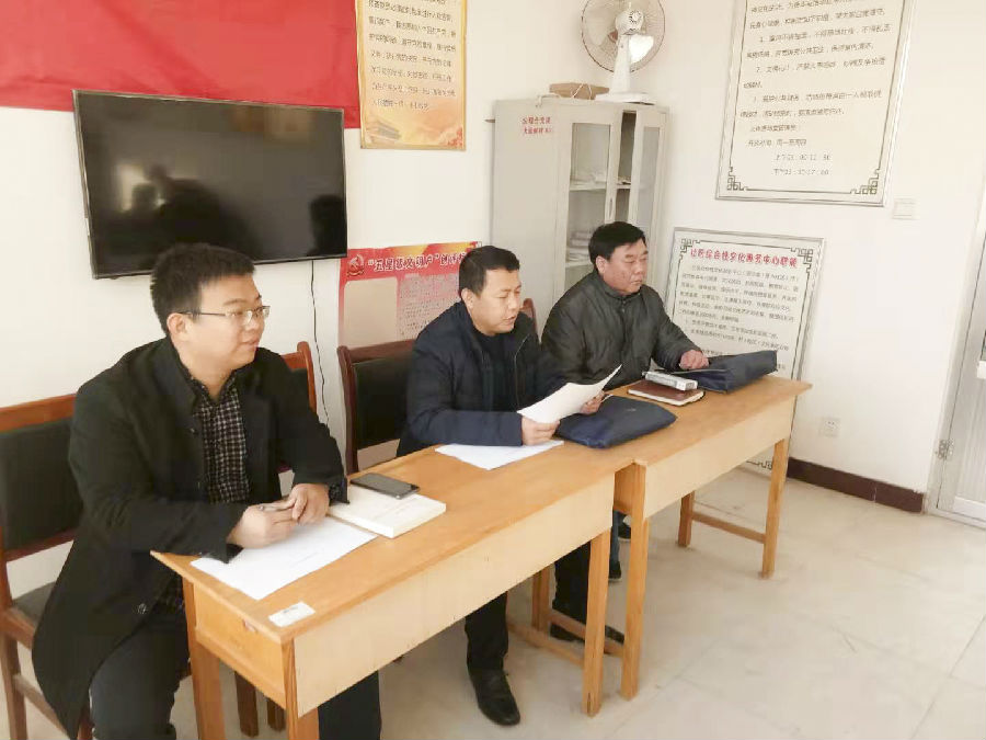 陈志(右一)主持召开村两委会议