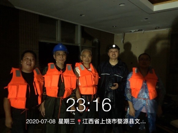 自6月22日以来,婺源县遭遇特大暴雨袭击,河水瞬间猛涨,6月24日县城三都水文站最高水位64.54米,超警戒水位6.54米,超1998年最高水位4.42米,百年不遇。持续强降雨给婺源分公司造成重大损失,中国电信婺源分公司迅速组织成立了一支党员应急通信突击队,婺源分公司团支部多年青年也挺身而出。做好防汛物资的储备,24小时随时待命。7月8日,又是豪雨连天,从防汛指挥部还得到信息,预计 7月8日夜里,洪峰将到达婺源城区,鲍慧刚和他的突击队员全部整装就位,严密值守,设备机架的螺丝已经下好,水位一旦上涨,20分钟之内就能把所有该保的核心设备全部迁移到地二楼阁楼上。果然,到了夜里11点,洪水离机房只有30厘米了。一声令下,十位勇士有条不紊地行动,抢在洪水漫上来之前迁移了设备。