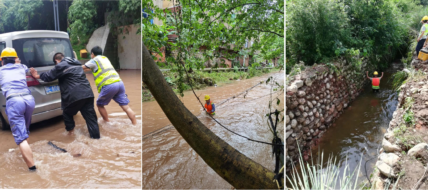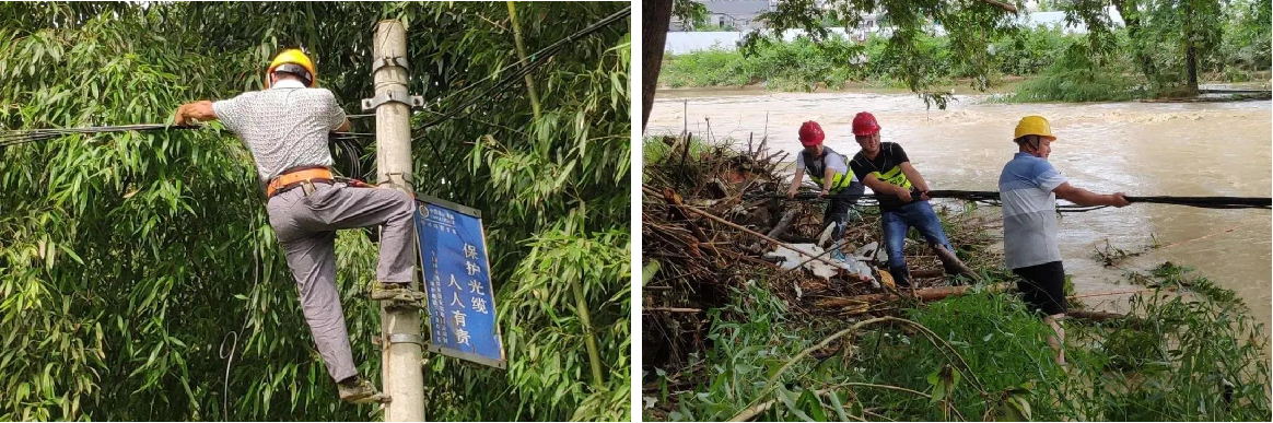 宣城旌德县分公司组织抢修人员值守一线,转战作业,确保通信不受影响。整个抢险过程中,党员带头奋战在湍急的洪水中,竭尽全力布放钢绞线缆,抢修中断的光缆线路,确保网络运行畅通。