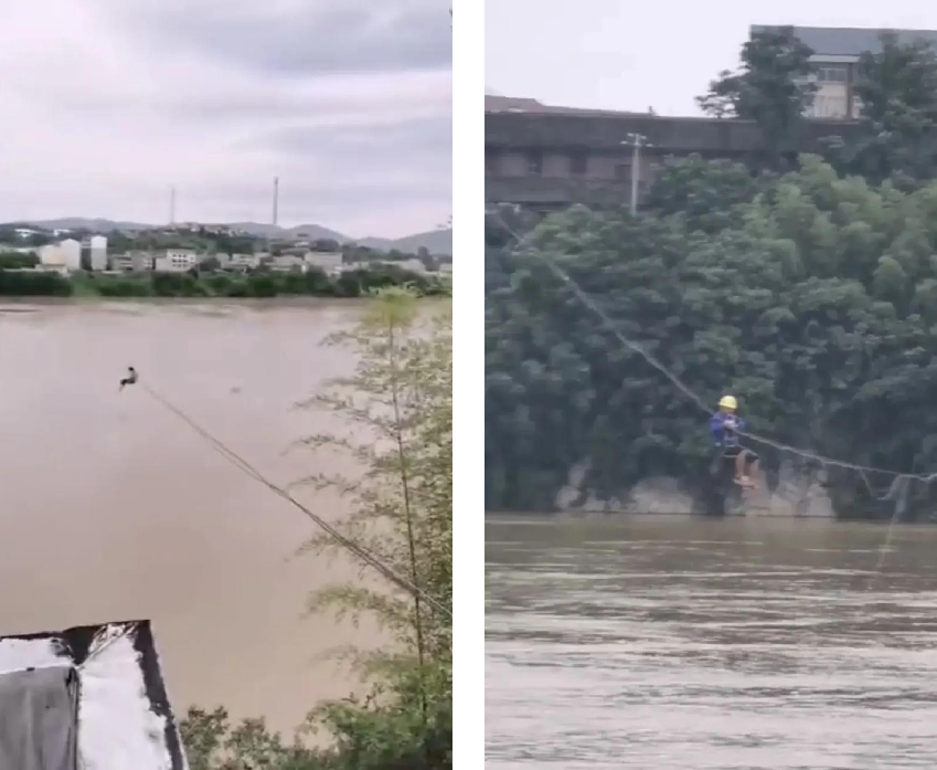 连日暴雨导致江口小区的信号中断,影响了800多个用户的正常使用。已经连续抢修了一周的抢修组人员立即到达障碍点,不顾脚上打起的水泡,冒雨查障,发现是过河主干光缆被暴雨冲断,若要恢复必须跨河放缆,长度200多米。在经过多方勘察,安全评估后,抢修组制定了滑道牵引过江的方案。