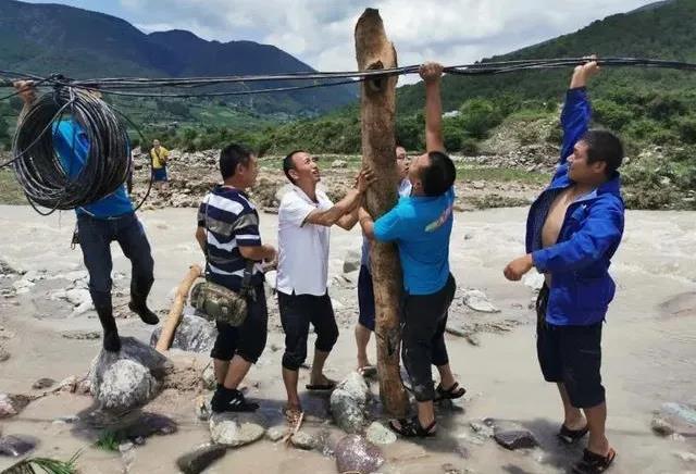 天上是雨水,脚下是急流,耳边是大风,面对如此险恶的地形,他们小心翼翼地进行着每一道抢修工序,终于在成功将线路恢复。