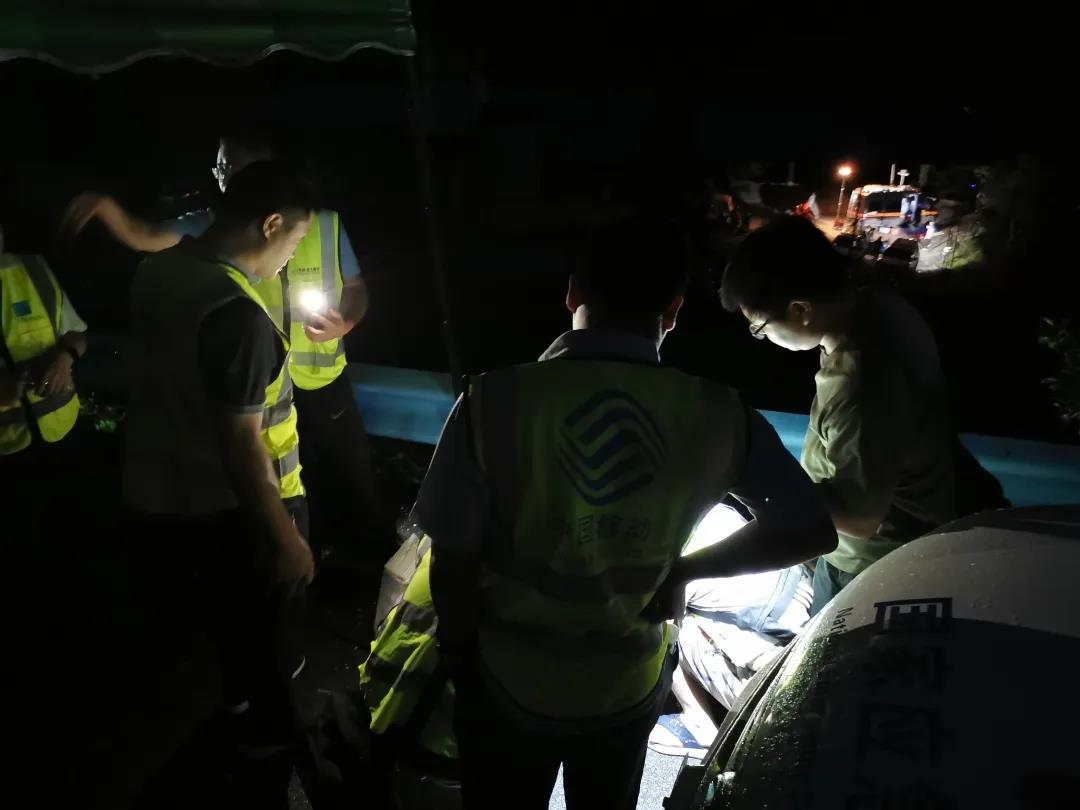 27日2:32,抢险突击队员收到预警信息,冕宁巨龙至长新通信光缆被洪水冲断,对灾区群众通信造成威胁。为保障通信生命线畅通,抢险突击队立即赶往巨龙基站,在确保安全的前提下,他们冒着暴雨淌水寻找断点,在被洪水冲倒的大树下清理受损光缆,借助车灯在黑夜里组织跳纤。5:58,天未亮、光缆已顺利抢通。