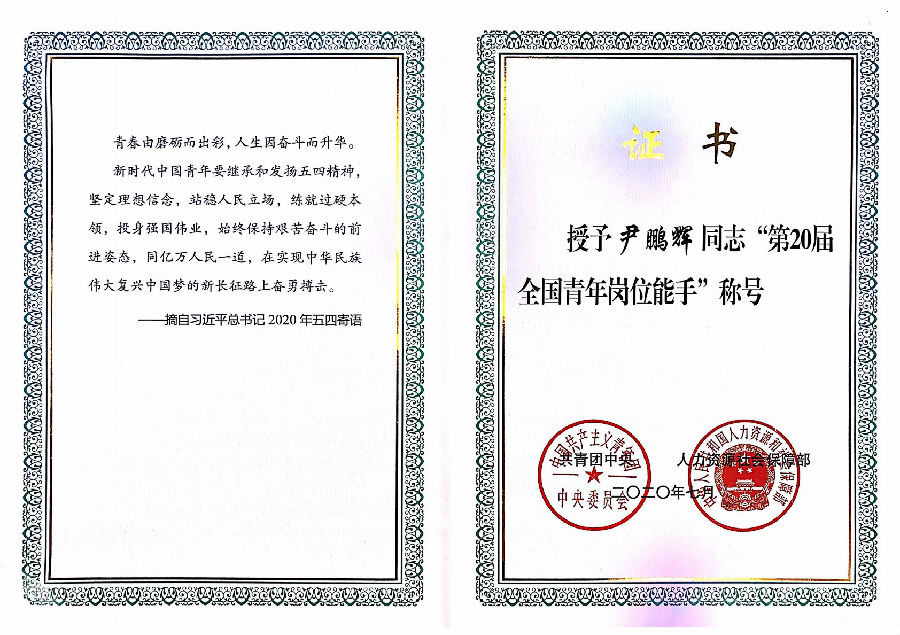 此后,厚积薄发的尹鹏辉一次次刷新着自己的成绩。几年间,便从一名学徒工成长为高级技师、技能之星,获得全国能源化学系统五一劳动奖章、全国煤炭行业青年岗位能手、中央企业技术能手等诸多殊荣。