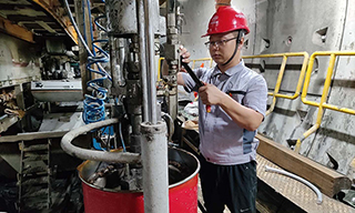王胜新正在检修盾构设备。(王庆玉 摄)
