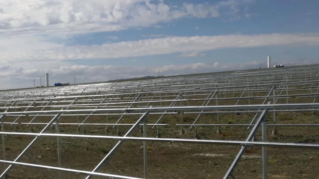 300人、20天、12万根桩基施工完成,新能源“追光者”们又一次战山区、拓荒原,将核工业精神在祖国的边疆建设中践行。这里是新疆生产建设兵团第六师北塔山牧场,地处中蒙边境线,距离最近的县城——昌吉州奇台县300公里,中核集团中核华兴承建的北塔山150MW光伏发电项目就坐落于此。