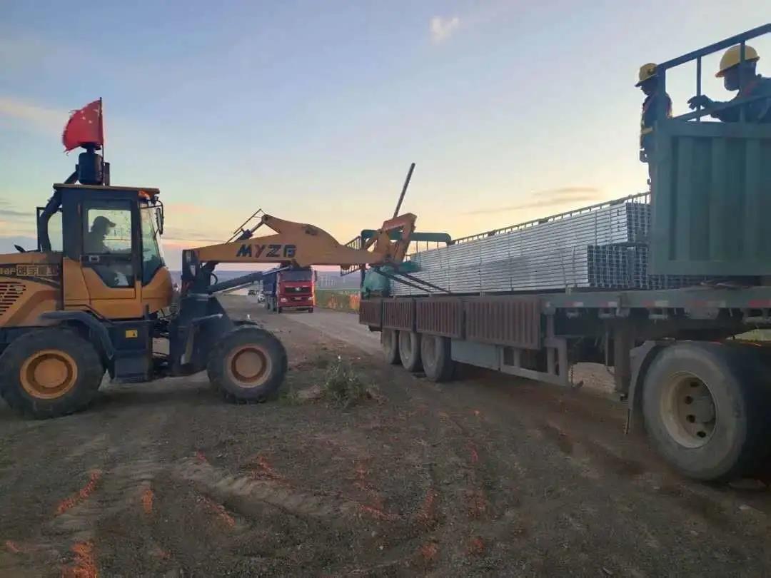 7月24日凌晨1点,厂部领导召开紧急会议,商议批准了15辆卡车通行。7月24日上午11点,15辆卡车终于全部抵达北塔山光伏发电项目现场,奔波了整整一宿未合眼的李工,紧紧抱住了厂部工作人员:“真的太感谢你们了!如果没有厂部的帮助,这批材料不知道啥时候才能到现场,耽误了工期可就是天大的事了!感谢厂部,感谢新疆人民,热合买提!”