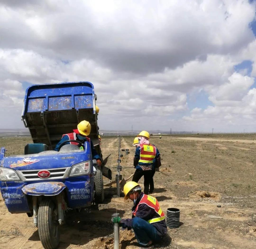 “咱们在现场手机没信号,电脑又没网,自己给项目省点电,晚上点个小灯照照亮,够啦!”基本的生活条件有了,各类前期建设准备工作也逐步开始,风电“追光者”们决心扎根在这片荒芜之地上,全力投入光伏项目建设中。