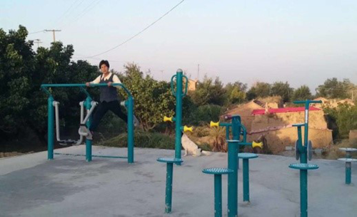 南井头村中安上了健身设施,丰富了村民的业余生活
