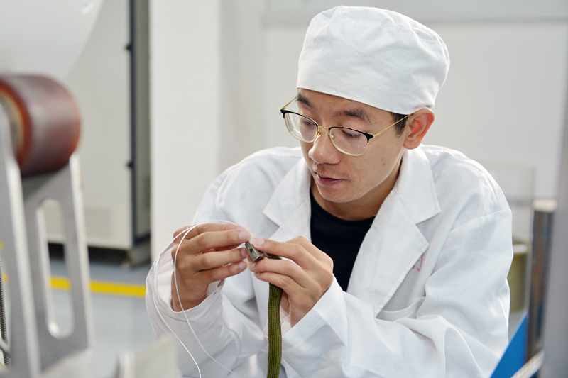 了解、熟悉、掌握一种型号产品的电气测试工作,一般需要半年,而要具备解决测试中的问题,则需要近两年。该型号研制进度留给秦发林的时间,只有不到两个月。在做好繁重批产型号相关工作的同时,秦发林刻苦钻研,最短时间内弄懂并掌握了该型号总体文件要求、产品设计原理、工作原理、及测试要求等相关内容。“电源线辐射干扰异常,怎么办?”在电磁兼容性试验中,同事发现这一紧急问题。接手该型号不到五个月的秦发林,直面考验:检查、核对、分析、试验……他查出问题所在,并根据现场诸多试验数据,匹配出某种适应该型号产品工作的滤波器,快速解决了问题。