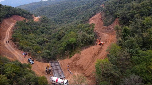 电站工程中,最先动工的是对外公路。这条路全长15.7千米,设计等级为公路三级,路面宽6.5米,是将来垣曲抽水蓄能电站与外界联系的唯一通道,更是工程建设期间输送建筑材料、机械设备等各类大宗物资的交通要道,堪称垣曲抽水蓄能电站的“生命通道”,道路位于中条山腹地,坡高沟深,环境极为恶劣。