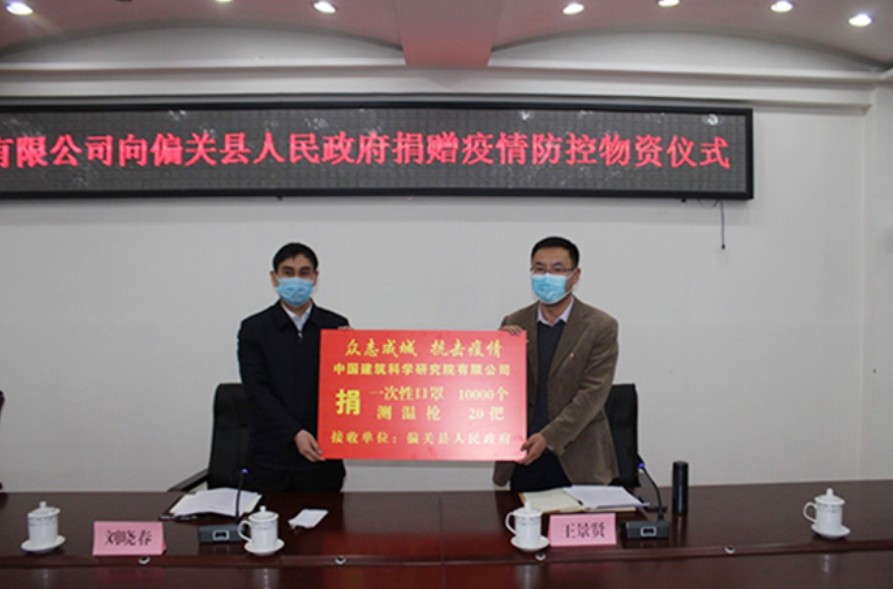2020年初,突如其来的疫情打乱人们的生活节奏,也牵动着王景贤的心,他牵挂着偏关县的百姓,“在家也不踏实,挺想过去那边的”。在家匆匆过完春节,他又踏上了工作岗位。在得知县里防疫物资紧缺后,他马上对接中国建研院,并在其帮助下筹措到了医用口罩10000只、测温枪20把,定向捐赠给偏关县防控疫情的一线人员,很大程度上解决了偏关县疫情防控和复工复产的“燃眉之急”,也为偏关增添了同舟共济、共战疫情的信心和勇气。