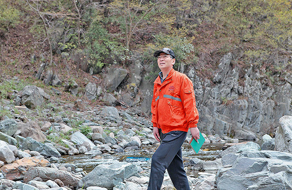 孟祥连在秦岭腹地进行地质调查。(张孟桥 摄)