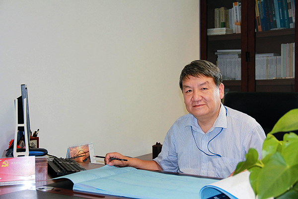 文望青正在审查桥梁图纸文件(李光伟 摄)