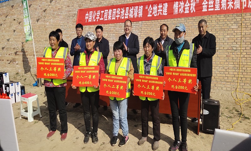 2018年建成的62座钢架大棚持续发挥作用,2020年种植的金丝皇菊长势喜人,中国化学工程华池县城壕镇“企地共建 情浓金秋”金丝皇菊采摘节和采摘技能竞赛活动成功举办,进一步宣传和推动金丝皇菊产业发展成带动庄科村及周边群众增收的特色产业。