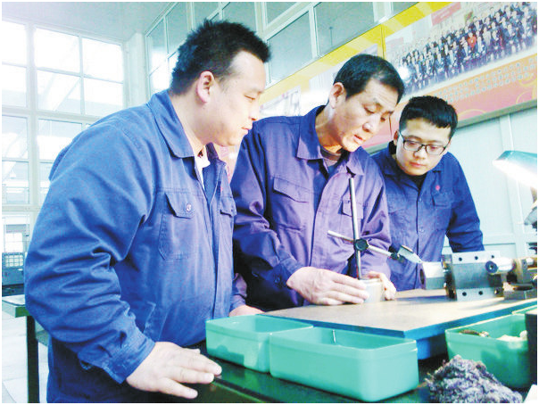 “三讲”化于心。在向徒弟传授技艺的同时,周建民还把讲方针政策、讲企业现状、讲红色基因融入其中,让每一名徒弟坚守初心、技能报国。周建民的徒弟牛力在刚进厂时,看到钳工每天坐在工作台前和机器打交道,对于未来的发展顿时灰了心。对此,周建民潜移默化地向牛力讲述国家对技术工人的扶持政策、企业为技术工人设立的上升通道等相关内容,并带着他去黄崖洞兵工厂旧址感受老一代兵工人的拼搏精神。徒弟牛力说:“成为师傅一样的技术工人就是我的奋斗目标。我一定不辜负师傅对我的期许。”