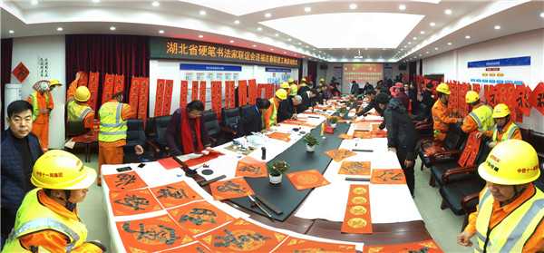 中铁十一局城轨公司送春联给农民工活动现场洋溢着喜庆的气氛