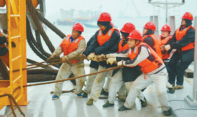 CB04标段有一对“夫妻档”,在综合部搞后勤的妻子小白,和在海上施工平台工作的丈夫小唐一上一下,相隔只有几海里,却十天半月见不了面。2016年3月百日会战打响后,夫妇俩就把小孩送回了老家。有一次,项目领导在微信群里表扬了小唐,抑制不住兴奋的小白在后面跟了一句“老公加油!”同事们才意识到,小唐已经15天没上岸了。