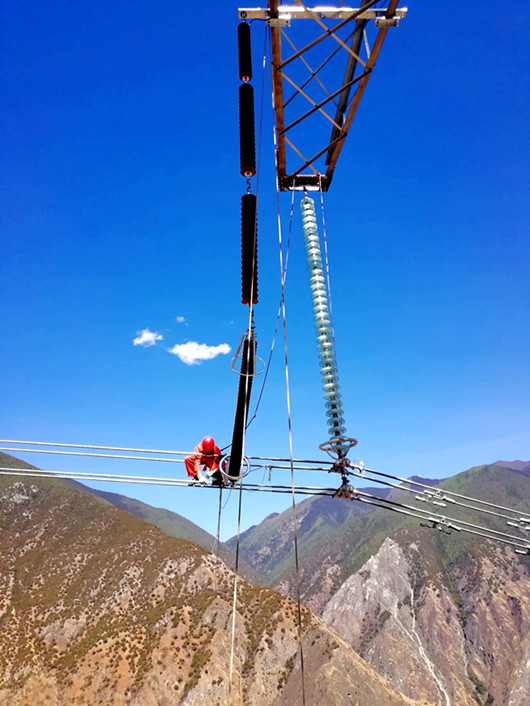 6月4日,川藏联网线路四川段“综合体检”圆满收官。50天内,检修人员完成了四川段全线8条575千米500千伏线路、1208基铁塔的走线检查、计划消缺和防污清扫,巡检重点区段线路105千米,更换绝缘子90余片,安装路避雷器及可控避雷针300多套,全面提升了线路防雷水平及运行可靠性,确保这条连接四川电网和西藏昌都电网的主动脉成功升压至500千伏运行,为藏中联网工程顺利投运奠定了基础。