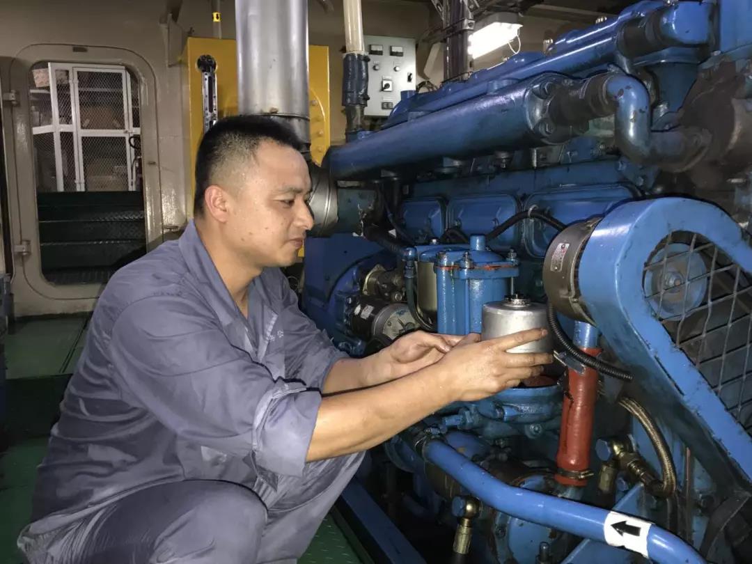 他叫张子焕,是一名二管轮,为了保证设备正常运行,他利用生产空隙,在环境温度超过50℃的机舱里,认真检修船舶辅机,汗流浃背。他说:“作为一名共产党员,就应该少说多做,我们多流汗,设备才有保障!”