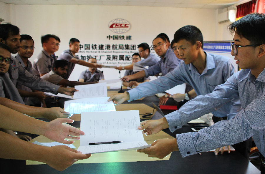 8月6日,中国铁建港航局总承包公司所属孟加拉项目部首届中孟“导师带徒”活动顺利举行,项目部从各部门孟籍工程师队伍中甄选出的6名优秀代表,作为首批培养对象与中方师傅签订了《导师带徒协议书》。作为项目部孟籍员工“3E”管理模式的重要一环,将当地优秀管理人才纳入“导师带徒”活动范畴,彰显了在海外项目建设中履行央企社会责任担当。
