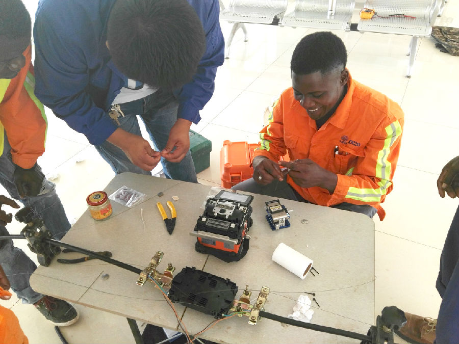 从最初的打零工,到如今的安籍电务“专家”,乔尼的工作能力得到了项目部的认可。不久前,他被项目部评选为“技能之星”,并且与11名安哥拉籍优秀员工代表一起,到中铁二十局中国总部参观学习。